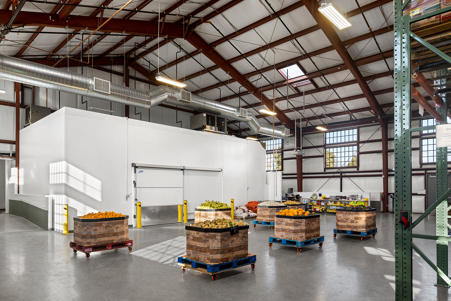 The building includes office spaces, a grocery-store-like food pantry, and an unconditioned storage warehouse. At 19,000 square feet, this project spanned nearly half an acre of territory in Alameda Point. Today, the new and improved facility enjoys improved food storage, processing, and distribution as a result of these upgrades, leading to faster turnaround times, increased capacity, and more efficient operations overall.